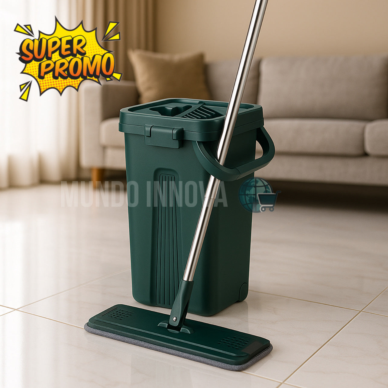 Disponible en dos colores: gris y verde, cuenta con un sistema giratorio que permite un escurrido rápido y eficiente, evitando el exceso de agua en los pisos y garantizando un secado más rápido. Ideal para mantener cualquier tipo de superficie brillante y libre de humedad