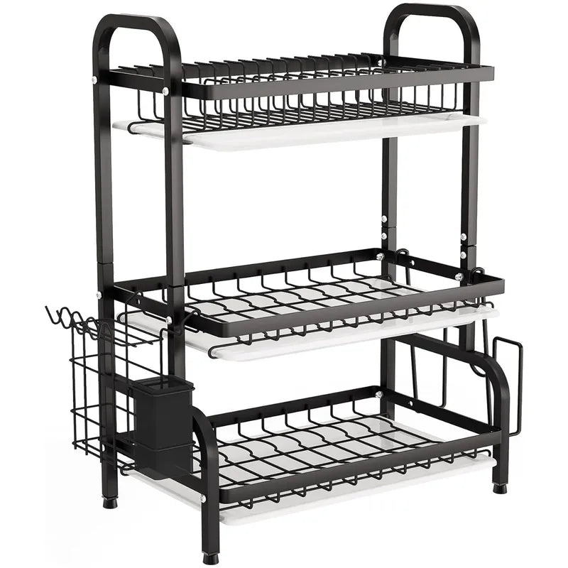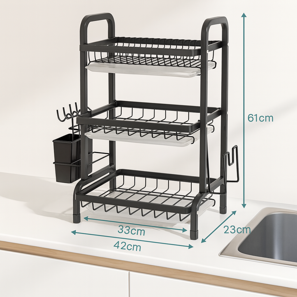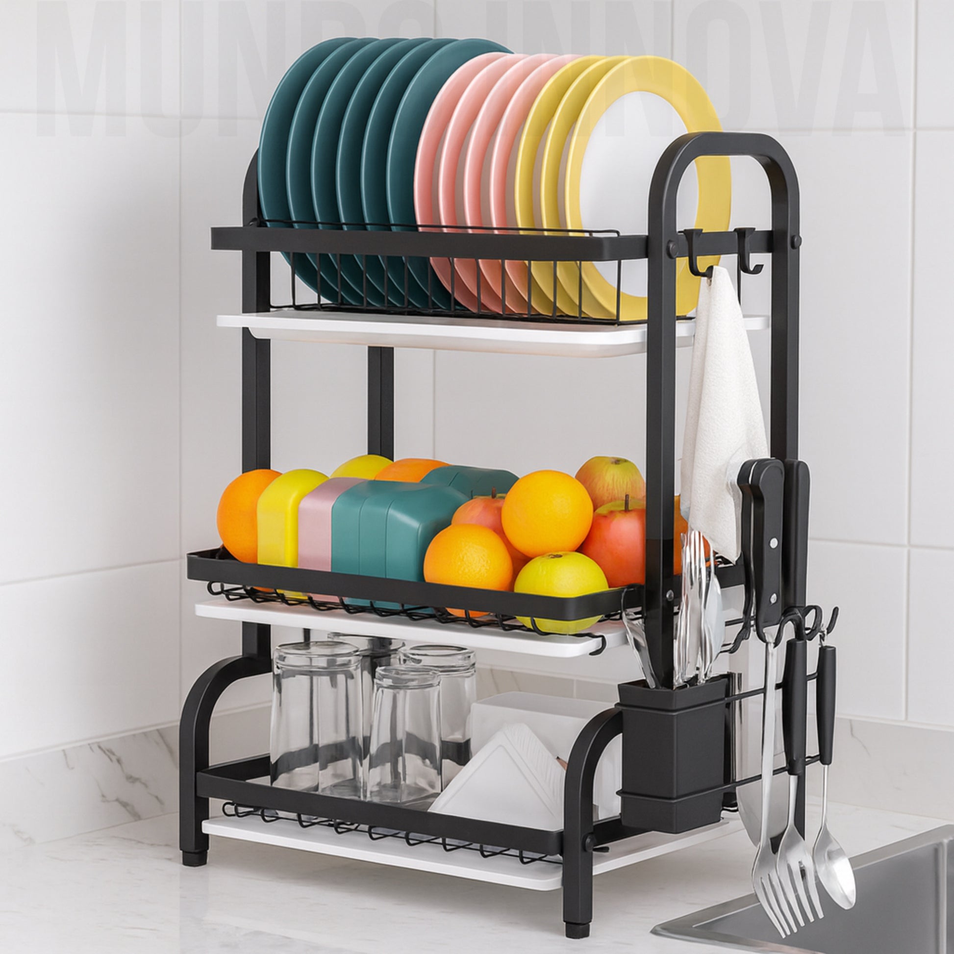 Organiza y seca tu loza de forma práctica y elegante con este escurridor de tres niveles fabricado en acero inoxidable, resistente a la humedad y al desgaste. Cada piso cuenta con su bandeja recolectora de agua, evitando derrames y manteniendo tu cocina limpia y ordenada.